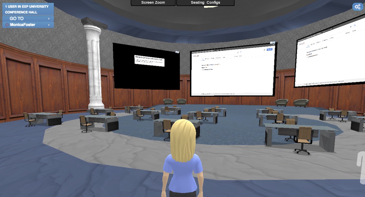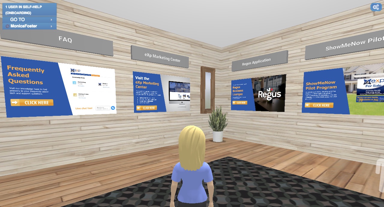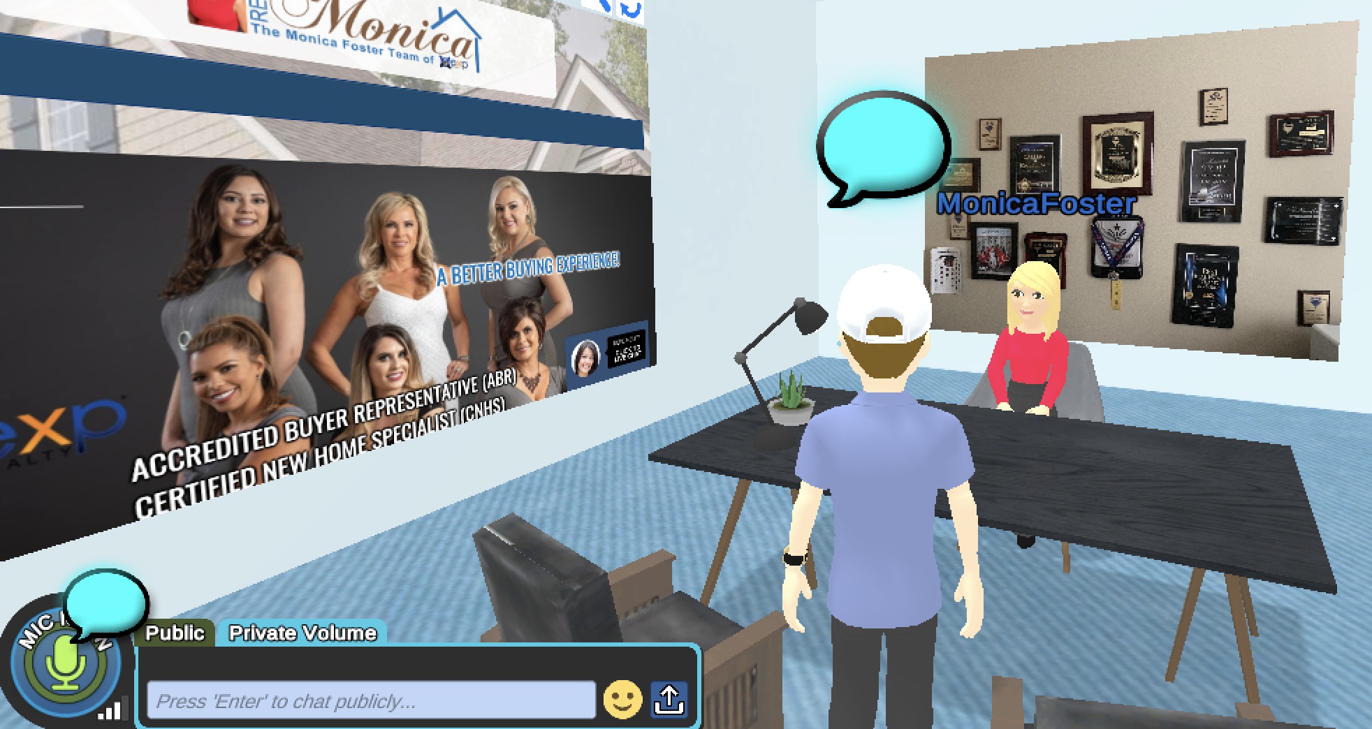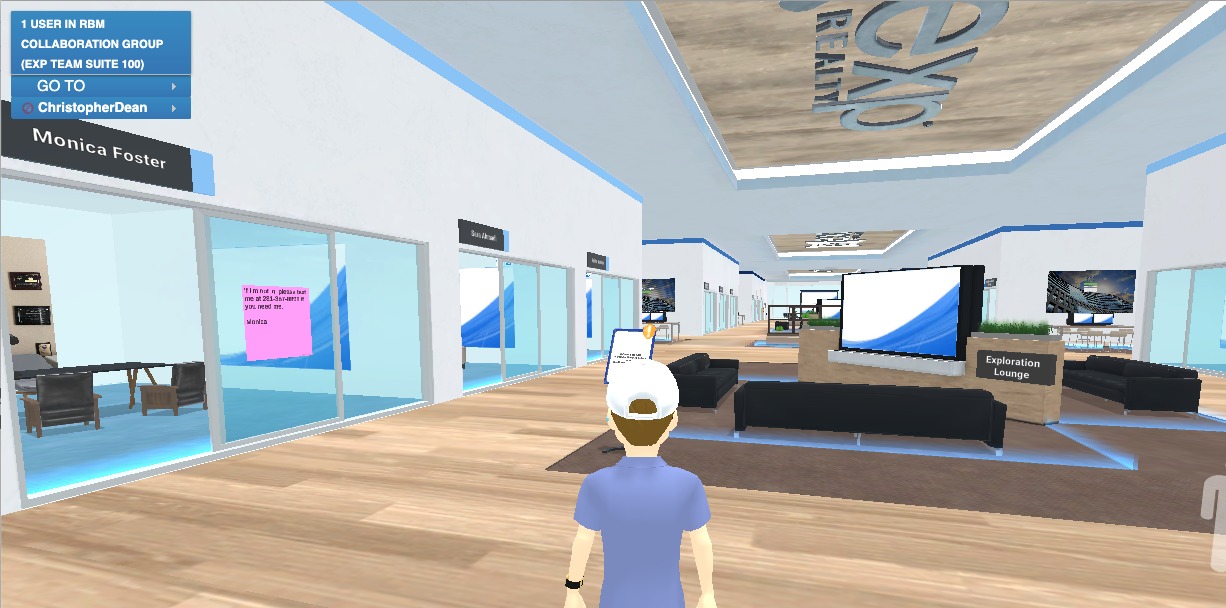 eXp World provides plenty of places to have meetings with your team, downline, other agent prospects and even clients. Any web screen can be used to browse the web, give a presentation, or share your screen. Some larger venues are available for rent.